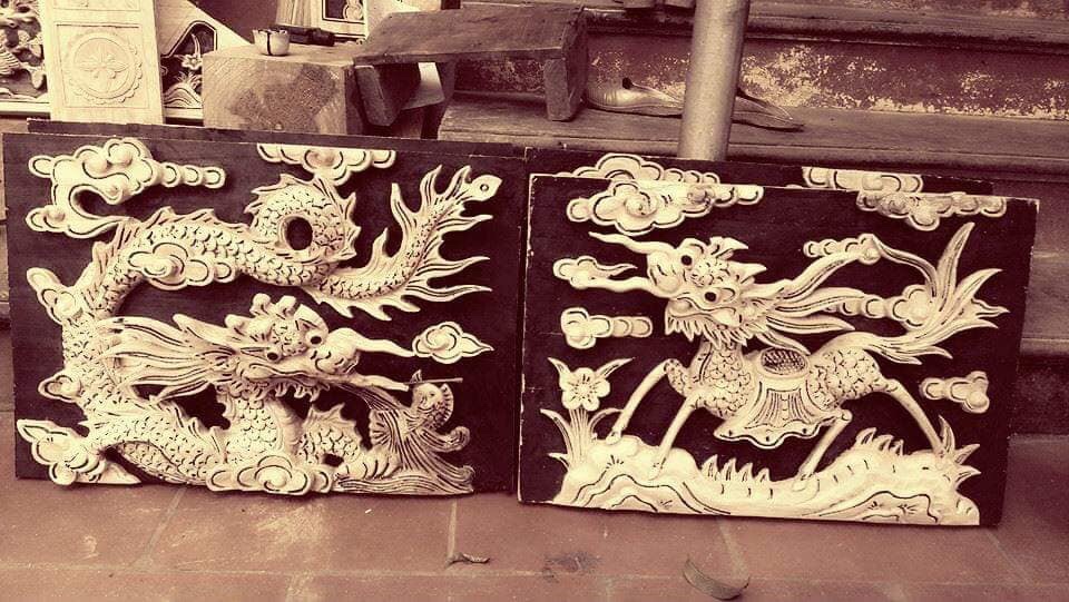 Dựa trên các bức vẽ được lưu truyền, tứ linh được những người nghệ nhân chạm khắc một cách tinh xảo và đưa vào trong kiến trúc nhà gỗ cổ truyền như một cách tri ân lịch sử văn hóa dân tộc.
